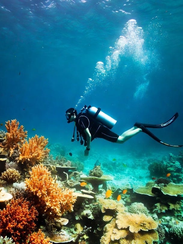 Sempre quisera ver os recifes de coral antes de morrer. Alugou uma pequena